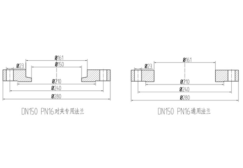 對夾式碟閥使用的法蘭不是普通的平焊法蘭,而是定做的對夾式蝶閥專用法蘭。這是因?yàn)閷A式蝶閥有一個稍大蝶閥通徑的密封面,如果用普通的平焊法蘭與對夾蝶閥連接,法蘭與蝶閥的密封面接觸尺寸較小,會影響密封效果,造成泄漏。所以對夾式蝶閥法蘭造有兩個內(nèi)徑,對夾式蝶閥法蘭外形同不帶頸的承插焊法蘭相似,小內(nèi)徑和通徑差不多大,用于保證蝶閥密封效果。對夾式蝶閥專用法蘭沒有標(biāo)準(zhǔn)號,是按行業(yè)內(nèi)的常規(guī)制作的。對夾式碟閥專用法蘭的其他尺寸與普通平焊法蘭相同,按法蘭標(biāo)準(zhǔn)(比如JB81-94、GB9112、ASME B16.5、HG20592等)執(zhí)行,且螺柱穿過法蘭時保證蝶閥閥體而不與閥體干涉。同時法蘭的小內(nèi)徑尺寸不能過小,應(yīng)保證對應(yīng)的蝶閥閥板能夠完全打開。法蘭的大內(nèi)徑和普通平焊法蘭內(nèi)徑一樣110mm,大內(nèi)徑是用于法蘭與108mm的管道焊接用。全部襯膠的蝶閥選蝶式法蘭也就是承插焊的平焊法蘭,若是金屬密封面的對夾蝶閥可以選用板式平焊法蘭。tyO般德閥門