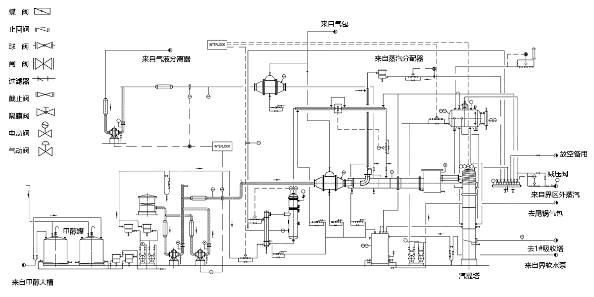 進料氣化及產(chǎn)品冷卻:進料汽化和產(chǎn)品急冷區(qū)由甲醇進料緩沖罐,進料閃蒸罐,洗滌水汽提塔,急冷塔、水汽提塔等組成。經(jīng)閃蒸罐出來的介質(zhì)溫度較高,能達到350℃,閥門主要材質(zhì)由碳鋼及不銹鋼閥門組成。急冷塔介質(zhì)溫度偏低,實際溫度能達到-110℃,閥門需要采用延長閥蓋結(jié)構(gòu),且液化介質(zhì)殘留在中腔,溫度升高后壓力過大,需注意閥門必須設(shè)計卸壓孔。