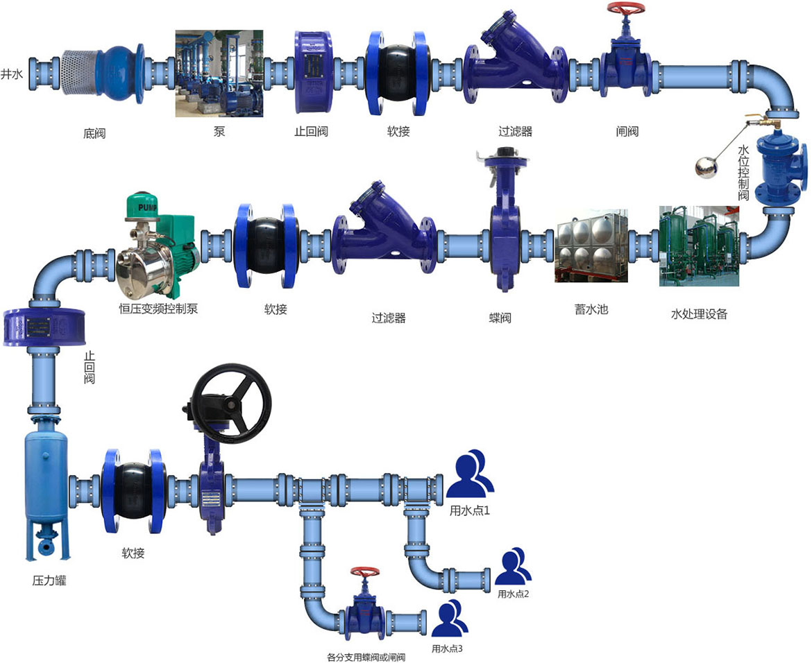 2.部分工廠對水質要求較高,需要用到水處理系統,主要用于除砂和除鐵錳。